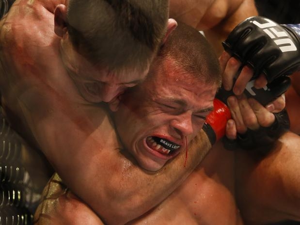 de ser finalizado ao ter o braço envergado pelo arm-lock aplicado pelo